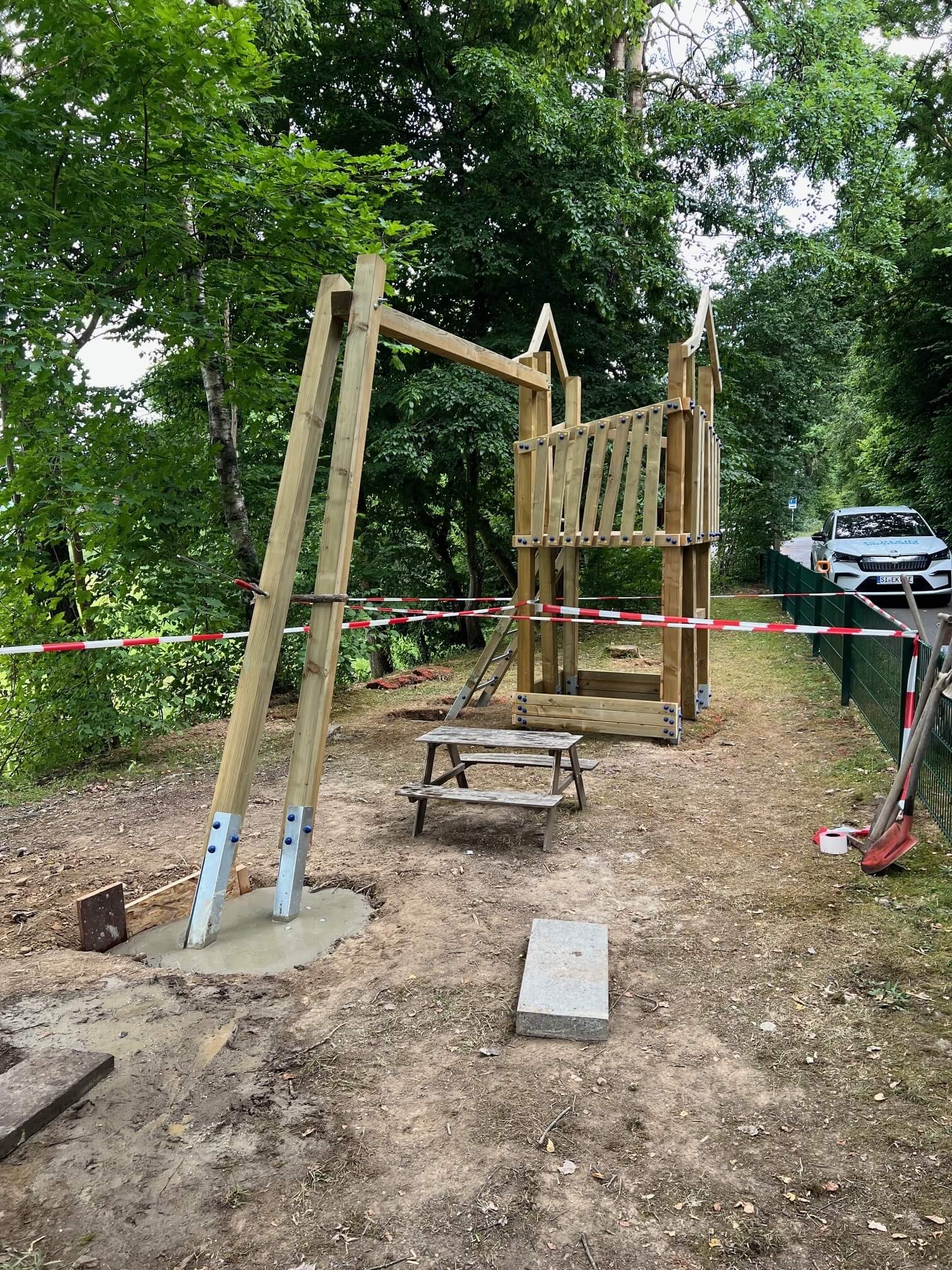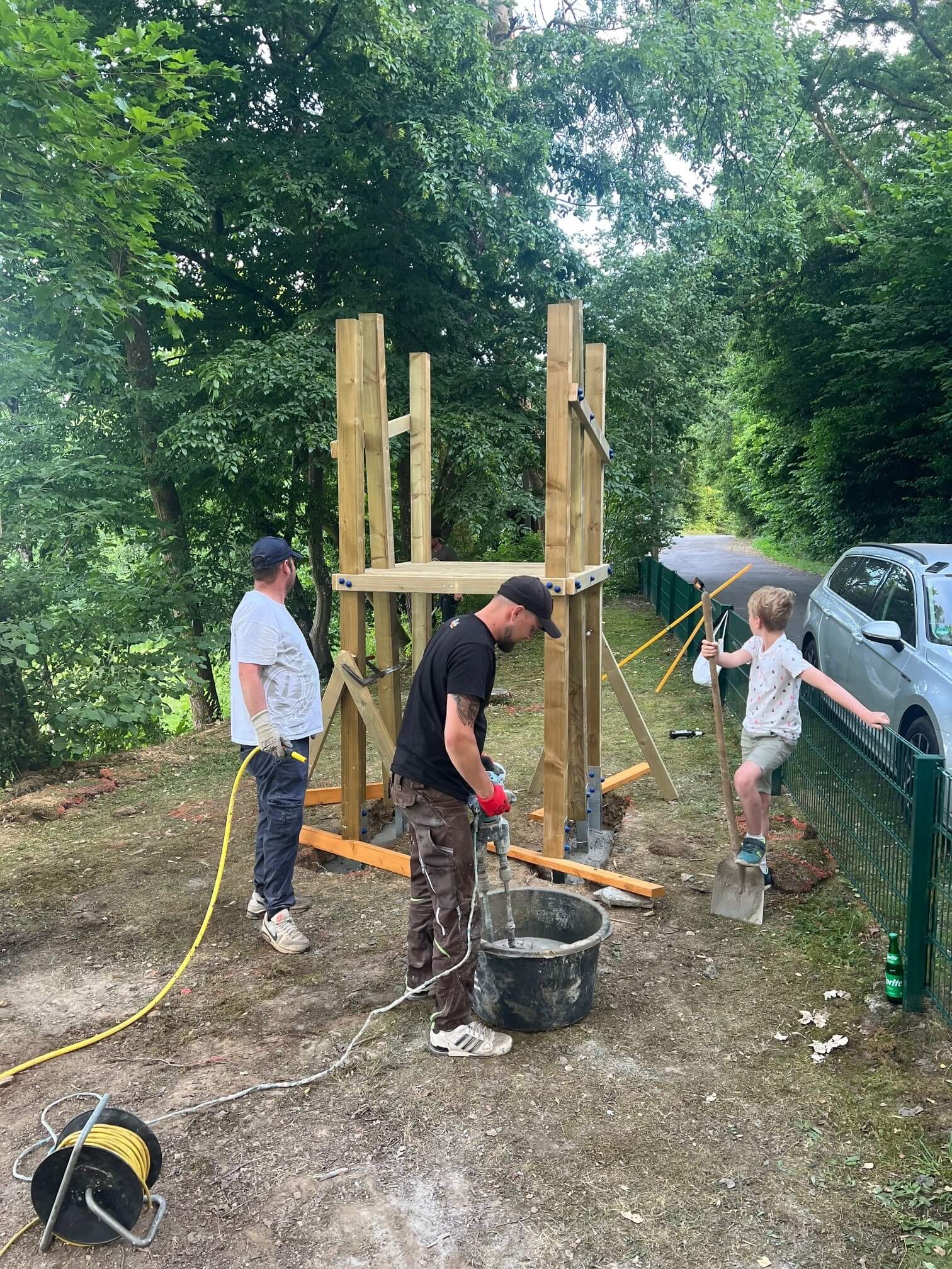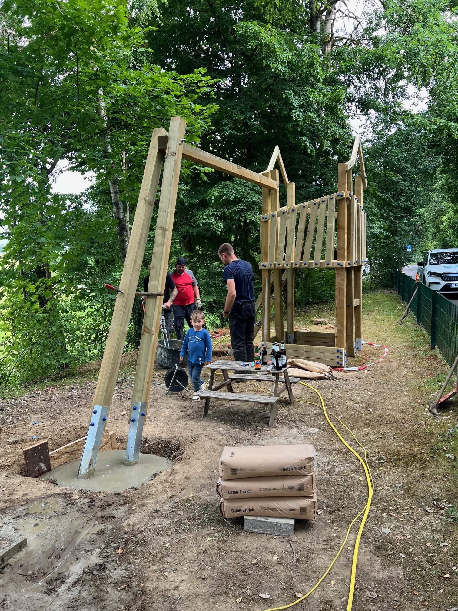 Die Kosten für das Fundamentmaterial (z. B. Beton) sowie die Verpflegung der Helfer konnten problemlos über die Vereinskasse gedeckt werden. Die Lieferung des neuen Klettergeräts erfolgte Mitte Juni. Der Aufbau – inklusive Fundamentarbeiten und Montage – wurde durch engagierte Vereinsmitglieder an mehreren Nachmittagen und Wochenenden durchgeführt.