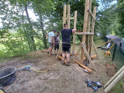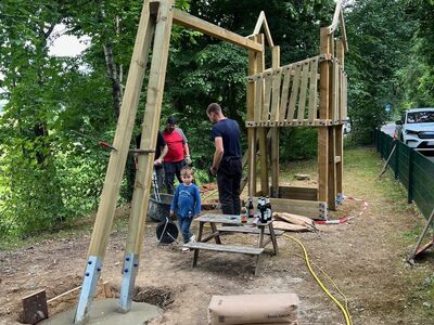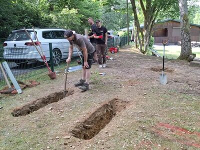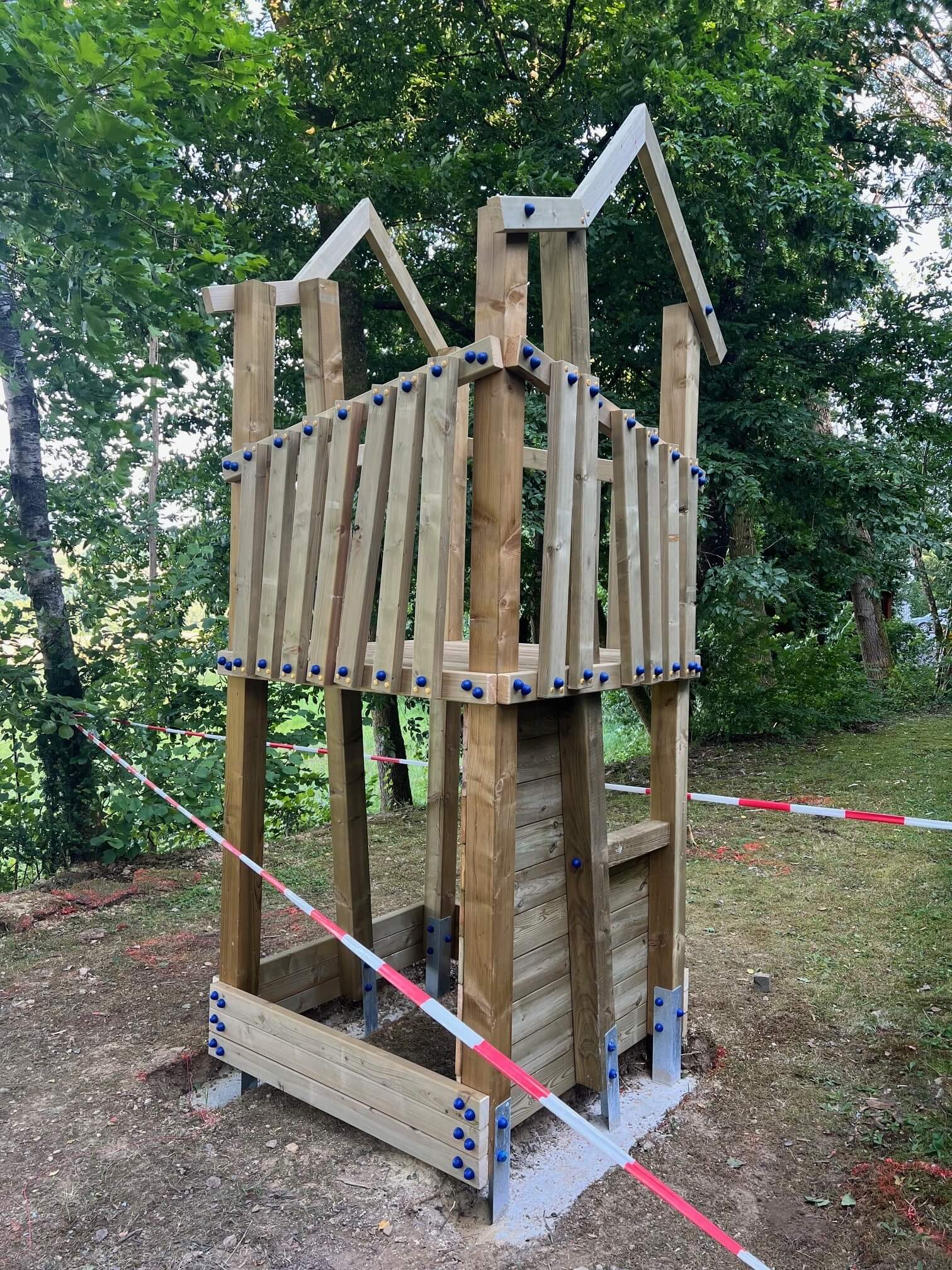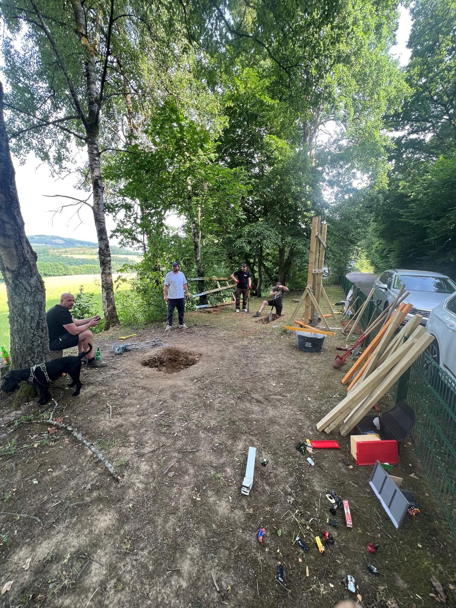Die Kosten für das Fundamentmaterial (z. B. Beton) sowie die Verpflegung der Helfer konnten problemlos über die Vereinskasse gedeckt werden. Die Lieferung des neuen Klettergeräts erfolgte Mitte Juni. Der Aufbau – inklusive Fundamentarbeiten und Montage – wurde durch engagierte Vereinsmitglieder an mehreren Nachmittagen und Wochenenden durchgeführt.
