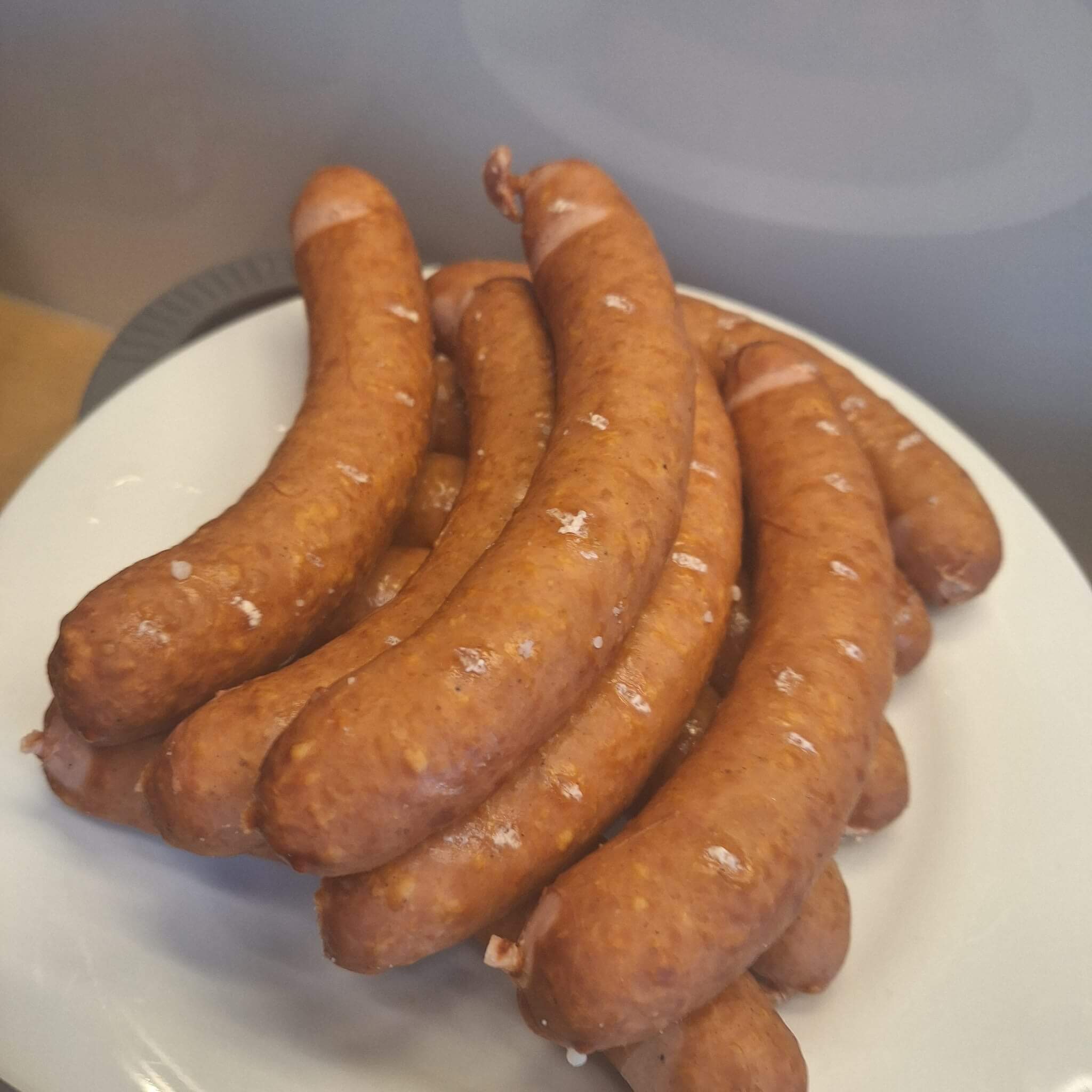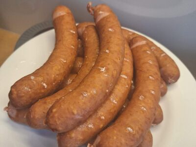 Es gibt Siedewurst mit Brot.