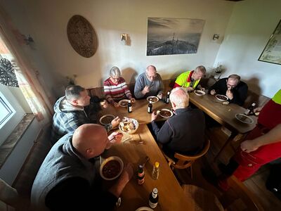 Für das leibliche Wohl der Mitarbeiter wurde ebenfalls gesorgt. Zum Frühstück gab es eine leckere Fleischwurst, die eine willkommene Stärkung bot. Zur Mittagszeit verwöhnte Familie Gruner alle Anwesenden mit herzhaften Gulasch- und Linsensuppen