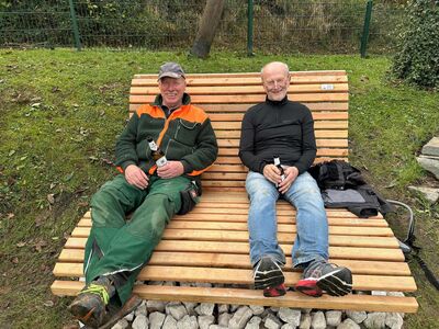Unser Bänkewart war mit dem Trekker unterwegs um alte Latten auf unseren Ruhebänken durch Neue zu ersetzen.